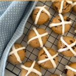 Once the cookies are cool, mix the powdered sugar and boiling water together to form a thick icing. Place into a piping bag with a plain nozzle and pipe a cross onto each cookie. Allow the icing to sit for around 15 minutes so that it sets before serving or storing.