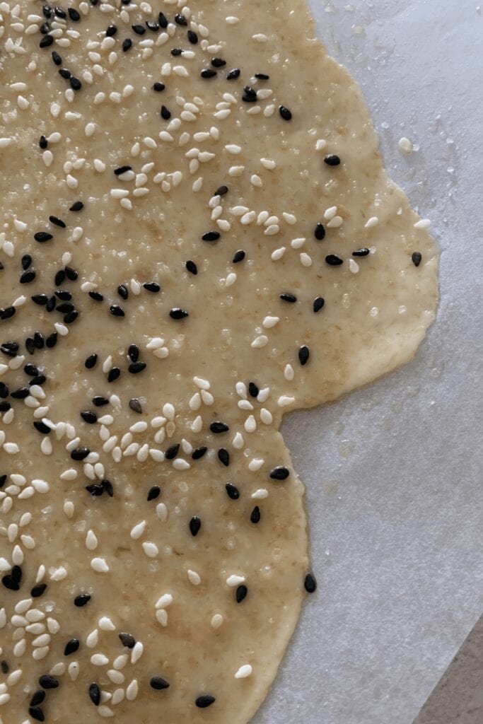 - Add some spices and seeds into the actual dough if you like. Sesame and flax are great for this. You could even add bigger seeds like pumpkin. Spices like fennel, paprika, pepper and garlic work well too. I love mixing through some homemade Everything Bagel seasoning. You could even try these cranberry & pistachio sourdough lavosh crackers.
