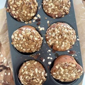 Perfect for breakfast on the go, these hearty muffins feature a sweet, crunchy brown sugar and oat topping. You can eat them as they are or break them open and slather them in homemade butter. All you need is a hot coffee to go for the perfect breakfast on the run!