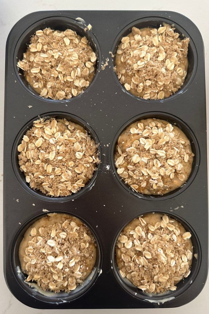 - Sprinkle the muffins with the topping of brown sugar and oats.