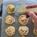- Once the dough has finished rising, you will need to fill and shape ham and cheese pinwheels.