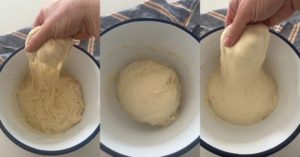 - Strengthening the DoughAfter the dough has been through autolyse you need to bring it together into a ball. Work your way around the bowl, grabbing the dough from the outside, stretching it up and over itself, into the centre. You should feel the dough strengthen as you do this. It doesn't have to be perfectly smooth or tight, just work around the bowl stretching and folding (around 10 - 15 times is perfect).