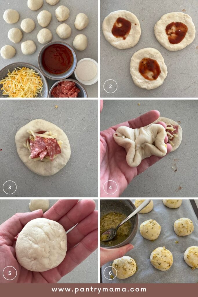 - Divide the pizza dough into portions around 30 to 50g (depending on how big you want your pizza pockets to be). Shape each portion into a rough ball and allow them to rest on the counter for around 30 minutes.
