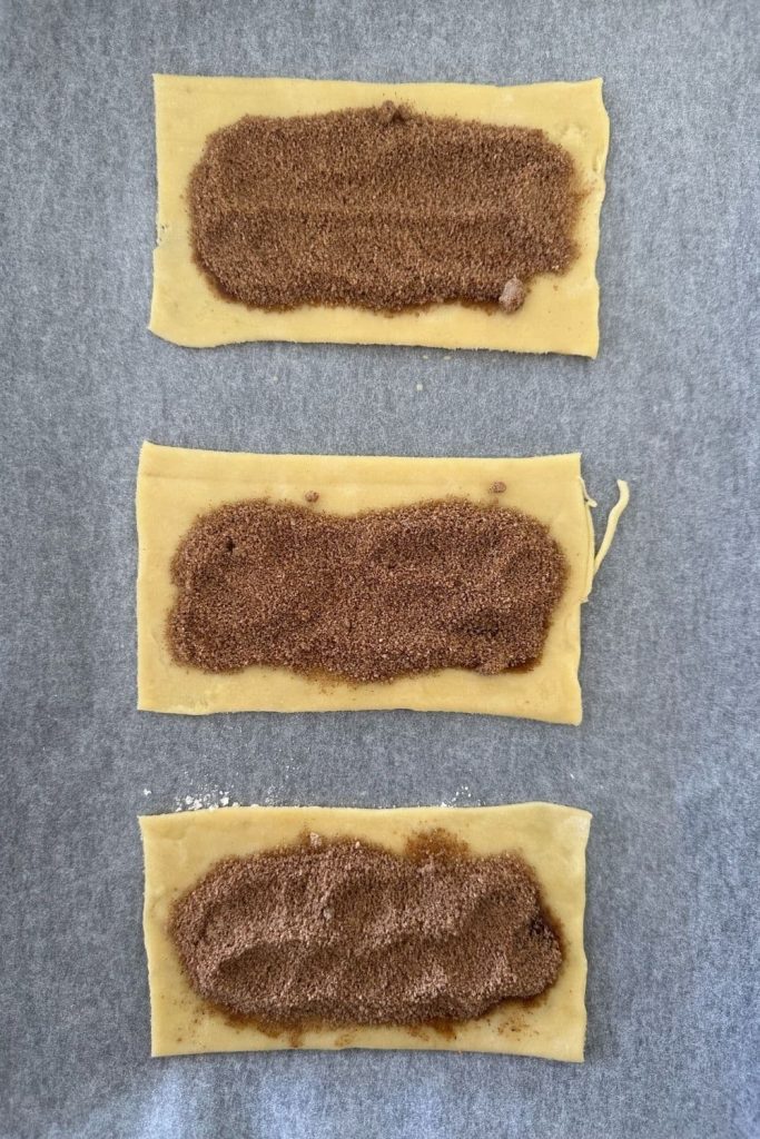 - Egg wash each of the rectangles (you want egg wash on the whole rectangle, not just the edges.