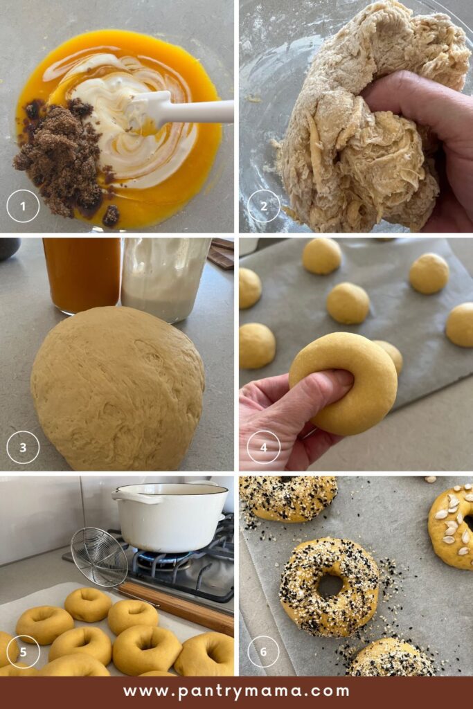 This recipe will show you how to make sourdough pumpkin bagels, including a baker's timeline.