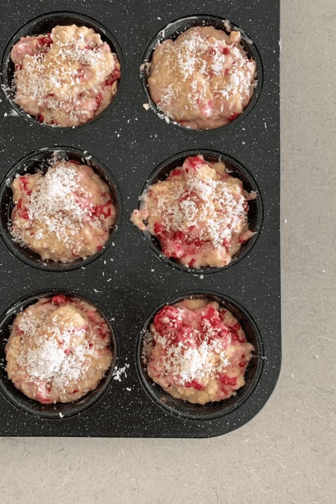 - Top them with oats instead of coconut for a heartier sourdough raspberry muffin.
