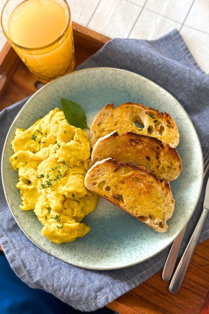 Take your morning scramble to the next level with these Sourdough Scrambled Eggs, featuring creamy, custardy eggs infused with the subtle tang of sourdough starter. This simple yet flavorful dish is sure to become a breakfast staple in your home. I love that you don't need cream or milk for this recipe - the sourdough starter does all the work!
