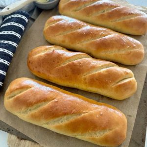 Love this recipe. I’ve made it a few times now. I divide dough into fourths for large hoagie buns or sixths for smaller hoagies. Even divided it into eighths to do brat buns. I like to make up a double batch and then freeze.