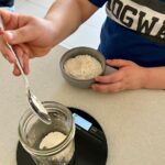 Depending on their age bracket, you can get them doing all things sourdough right alongside you. When my kids were babies, I loved to wear them in a baby carrier while I made sourdough. It meant that I could keep them close and still do the thing I love!