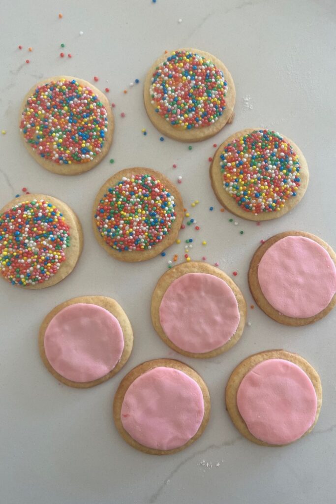 - You can decorate these cookies however you'd like. Royal icing is great if you want to pipe a design on. The white stars and pink circle cookies in these photos have been decorated using fondant icing which I rolled out really thing and cut to the same shape. The cookies with sprinkles were topped with a glaze and then dipped in sprinkles.