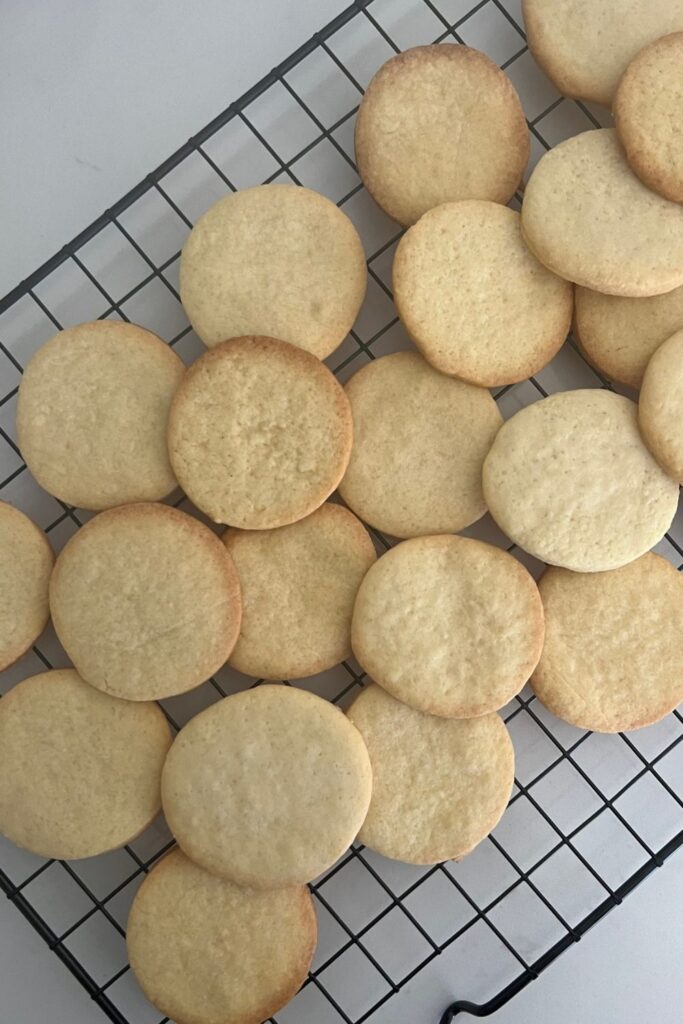 - Take the cookies out of the oven and allow them to sit on the tray for around 5 minutes before placing them on a wire rack to cool completely.
