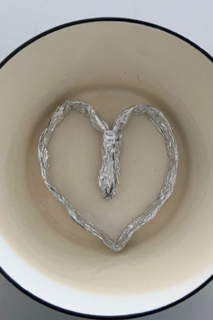 But remember you'll still need to use a piece of parchment paper to ensure your bread doesn't stick to the aluminum foil. So you would lift your dough into the Dutch Oven as per normal, but place it on top of the trivet, so the parchment paper protects the bottom of your loaf from baking into the trivet.