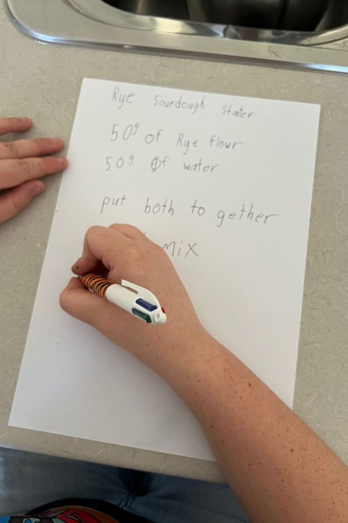 As your child grows, you can allow them to take responsibility for the feeding of the sourdough starter, measuring and mixing the ingredients, shaping the bread.
