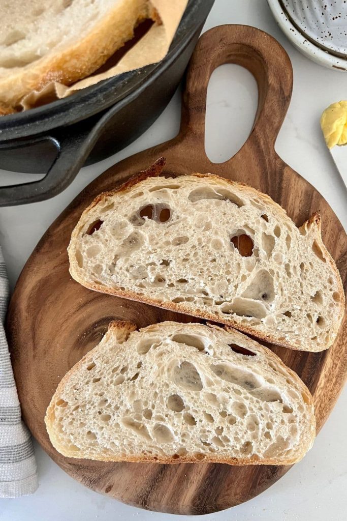I think the most important thing to note here is that the perfect loaf of sourdough bread might be different from one person to the next. One person might love a really open, lacy sourdough crumb with a thin, crackly crust where they have to dip the bread into homemade butter because it falls through the open holes.