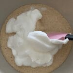 - Separate the eggs into yolk and whites. Beat the whites until they form stiff peaks. Set aside (see notes for this).